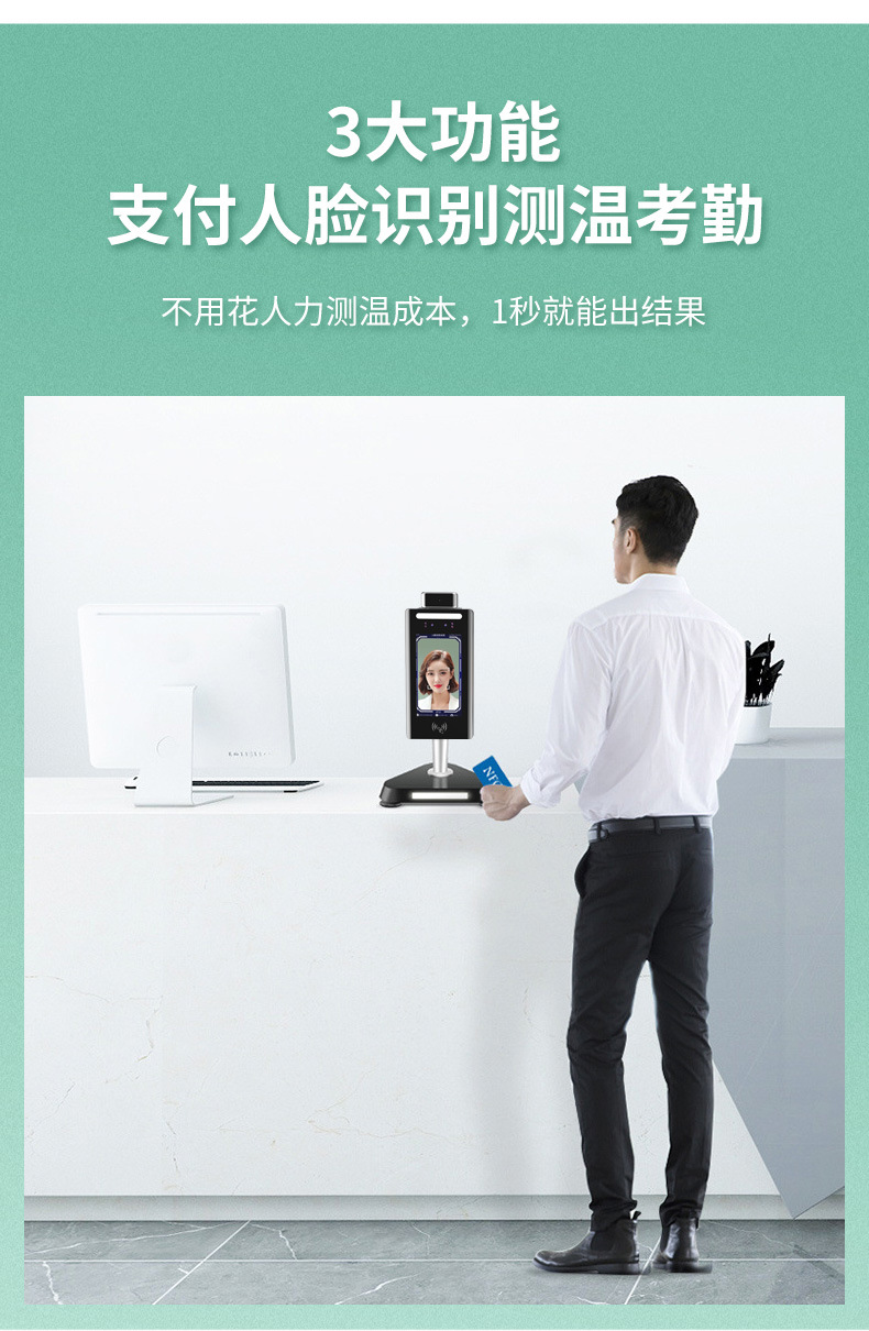 明創IDR-R108人臉識別測溫機可以遠距離進行測溫,識別是否戴口罩,同時做一個人臉識別